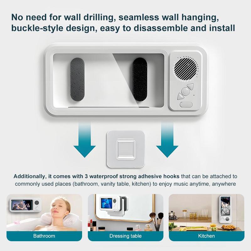 Waterproof Box Speaker, Phone Holder Bluetooth Speaker Audio Shower TV Holder, Swimming Pool, Kitchenbathroom,Sink Bathroom Waterproof 360 ° Rotating Touch Screen, Bluetooth Speaker, Watch Movies, Listen to Music Hands-Free Speakerphone Compact Smartphone